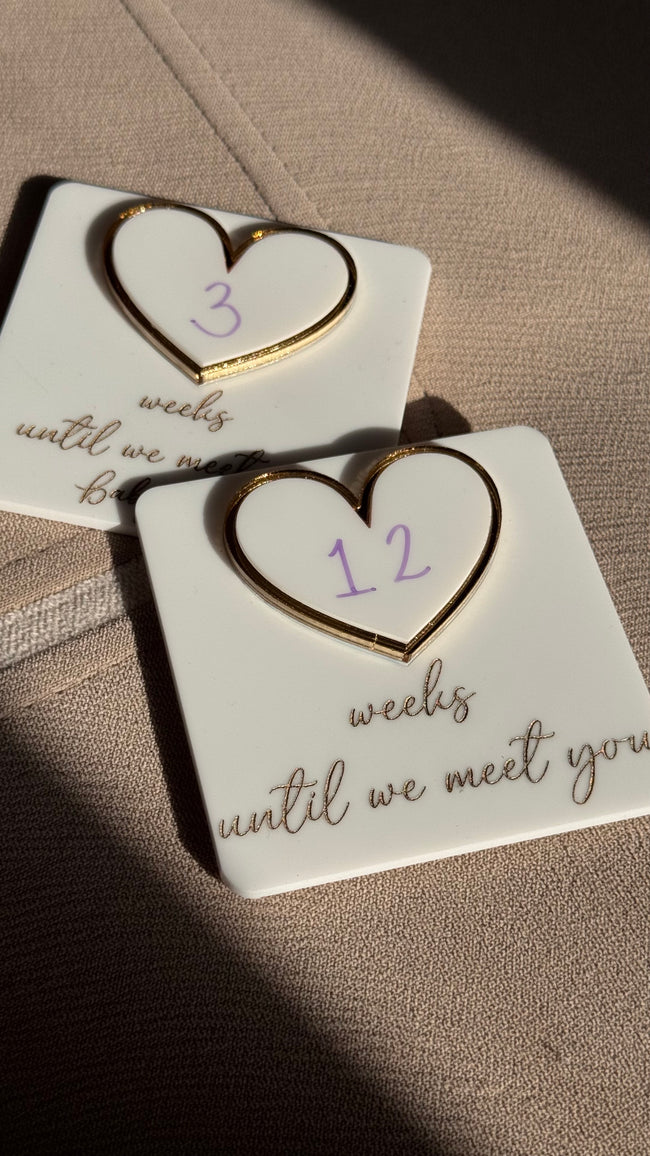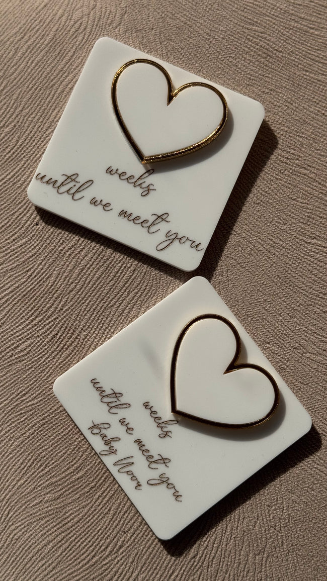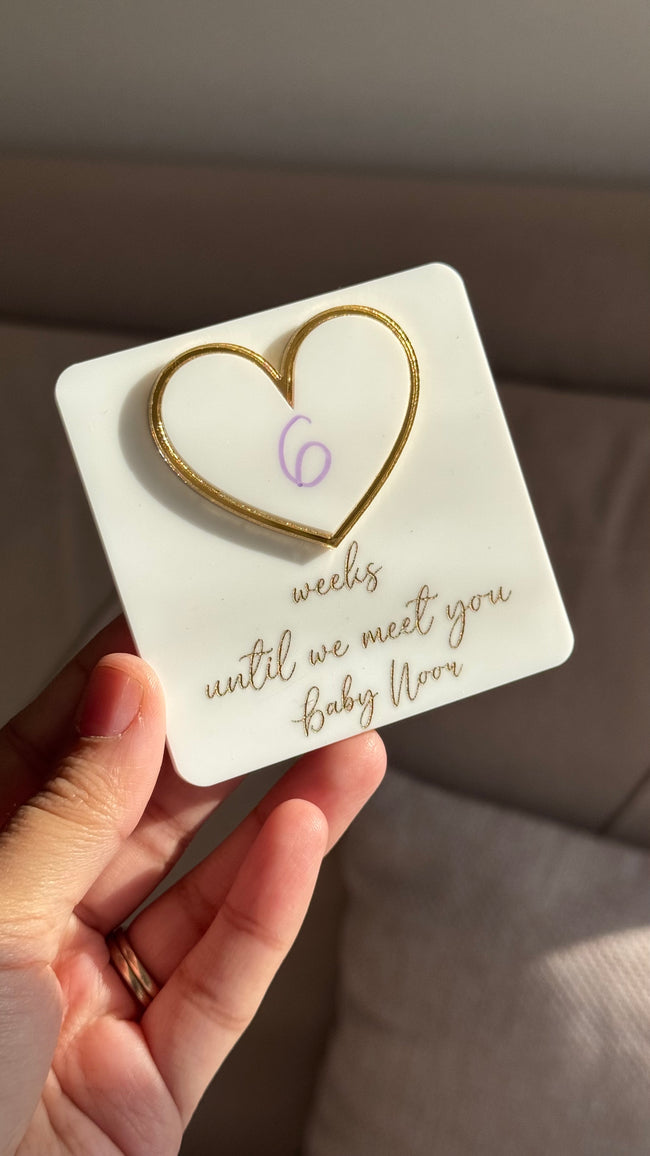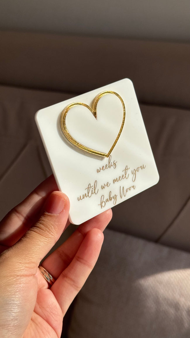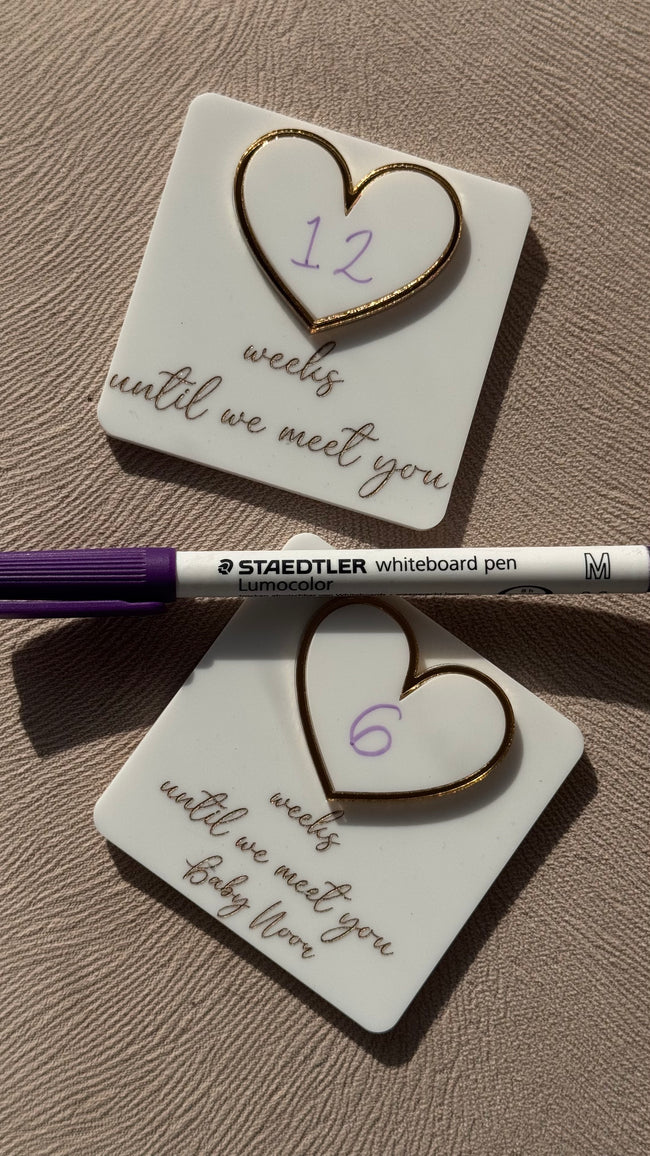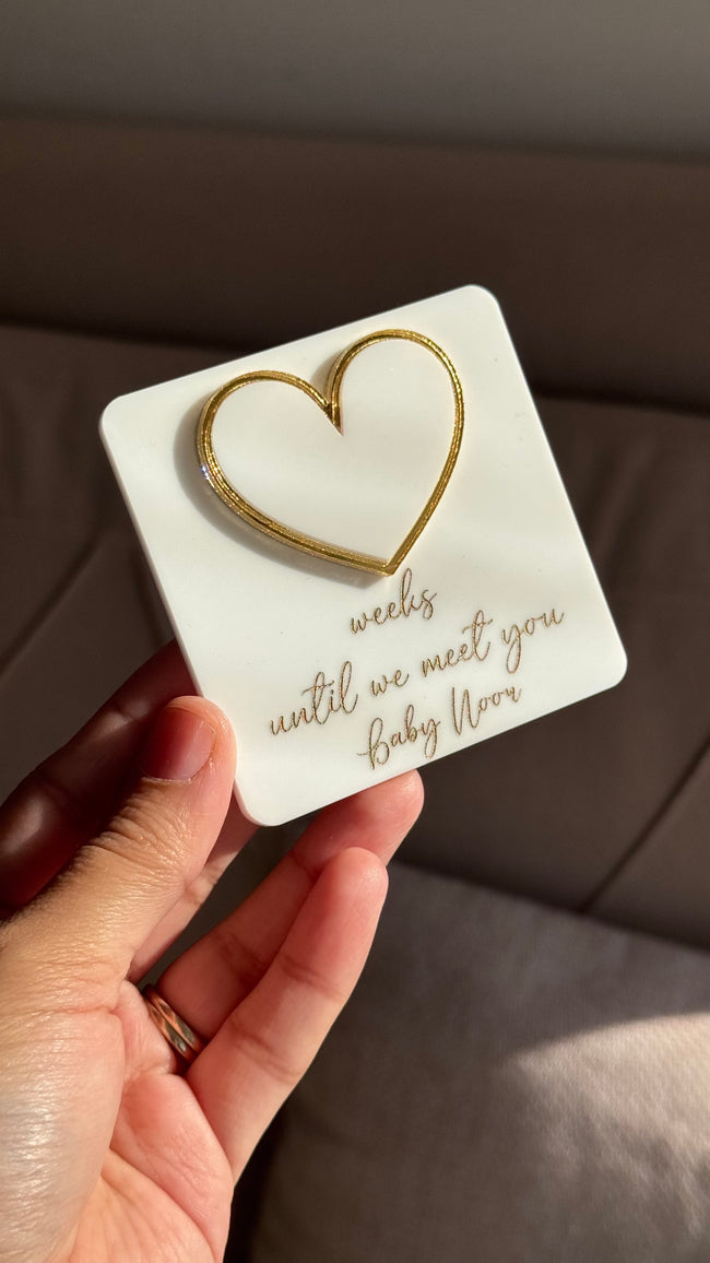 Whiteboard Weekly Pregnancy Countdown   Acrylic White base Gold  Engraving Personalised feature Size 8cm ✨ DISPATCHED IN 1-3 WORKING DAYS ✨
